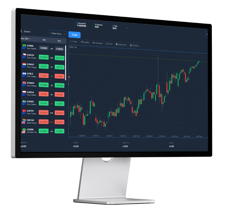 Access everything you need in one place. From real-time charts and analytics to a diverse selection of assets, including stocks, forex, crypto, and commodities, our webtrader provides all the tools for informed decision-making.